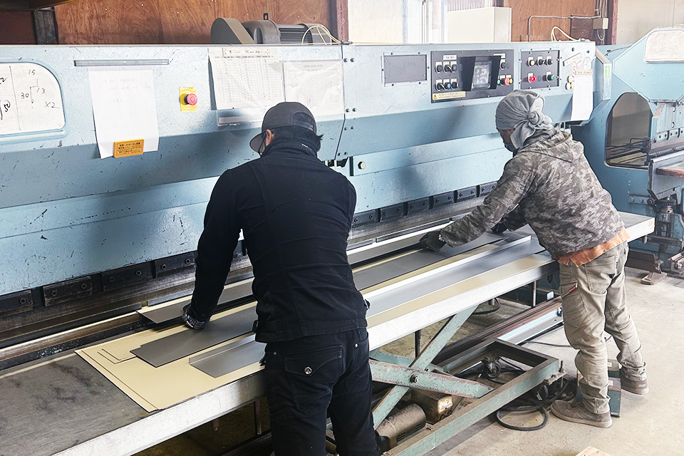 金属板を切断・折り曲げ・接合等の加工を行います。様々な現場に合わせて、寸法・角度を調整し加工。経験豊かなスタッフが高品質な鈑金に仕上げます。